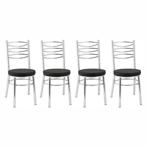 Kit 4 Cadeiras Cc34 Cromadas Debrum Treparoni Preto Ja imaginou uma cadeira linda e confortavel que agrega beleza a decoracao e ainda faz com que as suas refeicoes sejam mais prazerosas? O Kit com 4 Cadeiras Treparoni com acabamento cromado e uma excelente opcao para deixar a sua sala de jantar ou cozinha mais aconchegante e com um visual elegante, alem de ter um assento extremamente confortavel!