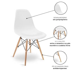 Kit 4 Cadeiras Charles Eames Eiffel Wood Design Branca