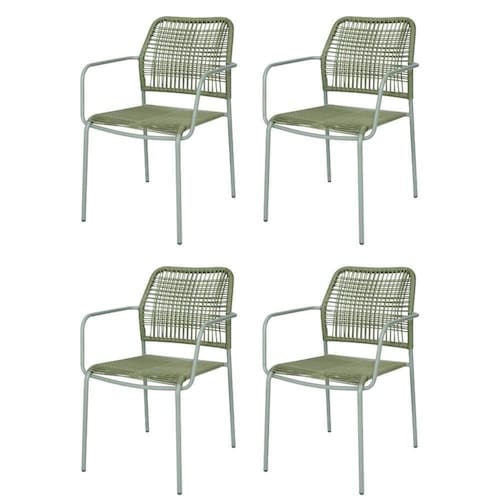 Kit 4 Cadeiras Com Braços Empilhável Copacabana Fratini Aço Carbono Verde Trama Corda Náutica Verde A Cadeira Copacabana da Fratini é a escolha perfeita para transformar e completar seu ambiente externo. Confeccionada com estrutura em aço carbono de alta resistência, ela garante durabilidade e estabilidade, ideal para suportar as condições do ambiente externo. O assento e o encosto são feitos em tramas de corda náutica, oferecendo conforto e um toque sofisticado à peça Além de sua resistência, a cadeira é um elemento de estilo que valoriza qualquer espaço, sendo a combinação perfeita entre funcionalidade e elegância. Fratini é uma marca de móveis contemporâneos, modernos e descontraídos desenvolvidos para dar um toque especial a todos os espaços. O objetivo é surpreender os clientes com produtos inovadores, que tragam, harmonia, personalidade e requinte. Simplesmente encantar! Cor: Verde | Materiais: Corda, Aço Carbono | Estilo de Decoração: Urbano Vintage | Linha: Copacabana | Marca: Fratini | Peso Suportado (kg): | Atributos: Confortável, Elegante, Versátil | Tipo de Base: Fixa | Área de Uso: Externa | Garantia (tempo): 8 meses | Garantia (descritivo): Garantia contra de fabricação de 06 meses. Consulte as nossas políticas. | Peso (kg): | Medidas: Largura (cm): | Medidas: Profundidade (cm): | Medidas: Altura (cm): | Medidas: Altura até o Assento (cm): | Medidas: Altura até o Braço (cm): | Possui Braços?: Sim | Possui Braços Reguláveis?: Não | Possui Regulagem de Altura?: Não | Entregue Montado?: Não | Possui Manual de Montagem?: Acompanha o Produto | Origem do Produto: | Conservação e Manutenção: Limpeza com pano úmido em solução de água e detergente neutro. Secar em seguida. | Acabamento: Pintura a Pó | Tipo de Assento: Fixo | Tipo de Encosto: Fixo | Tipo de Corda: Redonda | Estado de Origem: SP | Conteúdo da Embalagem: 04 Cadeiras | Produto: Kit 4 Cadeiras com Braços Empilhável Copacabana Fratini Aço Carbono Verde Trama Corda Náutica Verde | Tonalidade: Verde | Ambiente indicado: Varandas e Jardins | Material da estrutura: Metal | Montagem: Desmontado | Capacidade de Peso: