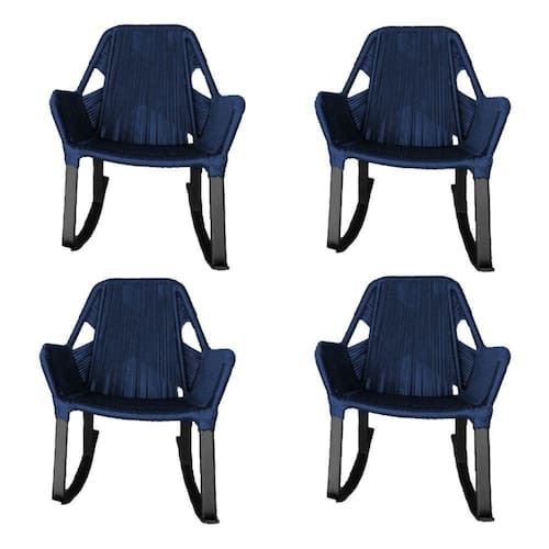 Kit 4 Cadeiras De Balanço Athenas Corda Náutica Base Em Alumínio Preto/azul Marinho - Cor: Azul A cadeira de balanço Athenas é linda e confortável, proporcionando momentos de relaxamento, sem deixar de lado a beleza e design inovador, ideal tanto para áreas internas quanto externas.Tipo: Cadeira Modelo: Athenas Cor da base: PretoCorda náutica: Azul MarinhoEstrutura em alumínio Medidas:Altura: 93cmLargura: 70cmComprimento: 74cmATENÇÃOIMAGENS MERAMENTE ILUSTRATIVAS REALIZADO EDIÇÃO, PODENDO HAVER UMA PEQUENA VARIAÇÃO DE COR DEPENDENDO DE CADA TELA OU MONITOR.Kit 4 Cadeiras de BalanÃo Athenas Corda NÃutica Base em AlumÃnio Preto/azul Marinho Marca: Guimaraes Store Ean: 7895037207415