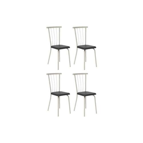 Cadeira Sala de Jantar 154 Aço Kit 4 Uni Prata/Courano Preto - Carraro Abaixo segue os produtos do KIT: Cadeira Sala de Jantar 154 Aço Kit 4 Uni Prata/Courano Preto - Carraro