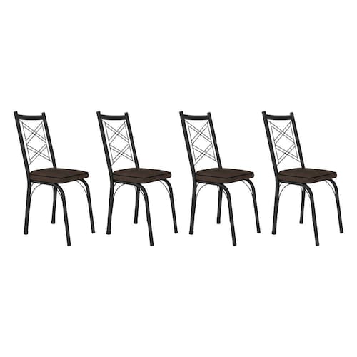 Kit 4 Cadeiras de Cozinha Delaware Estampado Imbuia Pés de Ferro Preto - Pallazio - Cinza