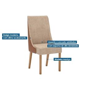Cadeira Sala de Jantar Ivy Kit 2 Un Nature/Linho Areia e Courano Caramelo - Henn
