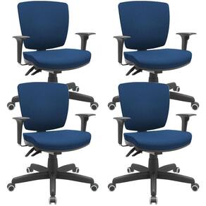 Kit 4 Cadeiras De Escritório Executiva Office Giratória Preto Baixa Flexi P03 Poliéster Azul - Lyam