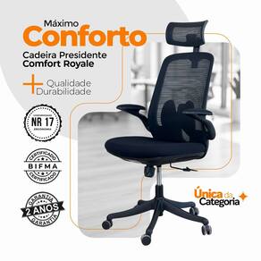 A Comfort Royale foi desenvolvida para quem busca uma cadeira prática, elegante e funcional. Com apoio de cabeça ajustável, braços retráteis e estrutura ergonômica, ela oferece conforto e liberdade para diferentes rotinas de trabalho.