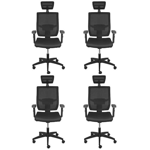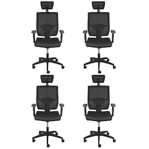 A cadeira Atenas Alta possui assento e encosto em tela mesh, estrutura em nylon, rodas em PU que não danificam o piso e sistema relax com travamento em diversas posições. É uma cadeira ergonômica que consta com ajustes de braços, de apoio de cabeça. Indicada para ambientes internos Altura do Conjunto: 119 cm Ambiente: null Ambiente Principal: Escritório Cor: Preto Informação Complementar: 4x Cadeira de Escritório Presidente com NR17 Atenas Alta Preto Largura: 49 cm Altura: 119 cm Peso: 15,7 kg Profundidade: 46 cm Necessita Montagem: Sim
