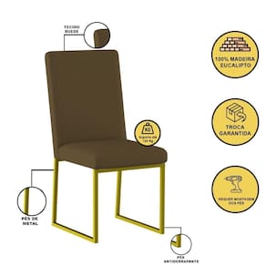 Transforme o seu ambiente com a Cadeira Estofada para Mesa de Jantar com Base Industrial Dourado. Esta cadeira é a combinação perfeita de conforto, durabilidade e um design moderno, ideal para mesas de jantar, áreas de estar e até mesmo ambientes comerciais.