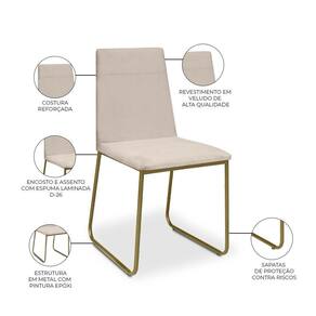 Kit 4 Cadeiras De Jantar Cozinha Industrial Lexa Veludo Élpis Móveis Bege Dourada