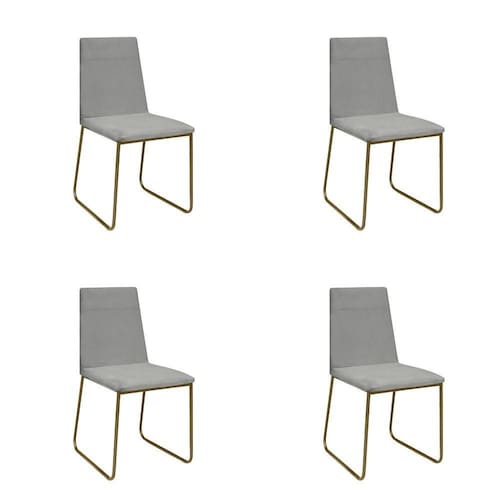 Kit 4 Cadeiras De Jantar Cozinha Industrial Lexa Veludo Élpis Móveis Cinza Dourada