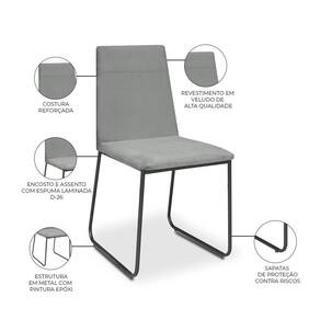 Kit 4 Cadeiras De Jantar Cozinha Industrial Lexa Veludo Élpis Móveis Cinza Preta