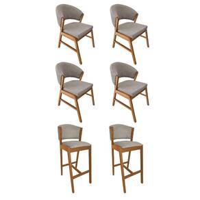 AS IMAGENS SÃO MERAMENTE ILUSTRATIVAS E PODEM SOFRER VARIAÇÕES DE COR E PEQUENOS DETALHES DE ACORDO COM O SEU MONITOR, ILUMINAÇÃO DO AMBIENTE E ATÉ MESMO A SUA PERCEPÇÃO 4 Cadeiras de Jantar Debora Madeira MaciÃa com 2 Banquetas Ana Cerejeira Premium Linho Bege