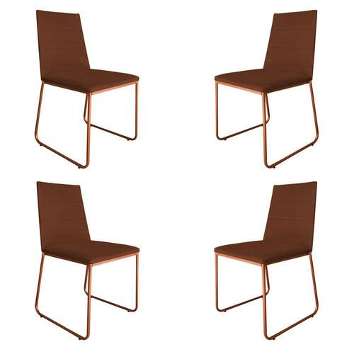 Kit 4 Cadeiras de Jantar Estofada Lille Base Bronze Veludo Terracota chegou essa incrível novidade para você, que deseja inovar e decorar o seu espaço com muito Estilo. A Cadeira Lille possui uma matéria-prima de ótima qualidade, garantindo conforto e durabilidade do produto. Possui variações de cores tanto na base e no assento, oferecendo várias opções de escolha para sua decoração.