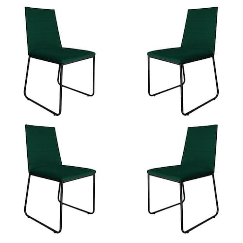 Kit 4 Cadeiras de Jantar Estofada Lille Base Preta Veludo Verde - Montanaris Decor