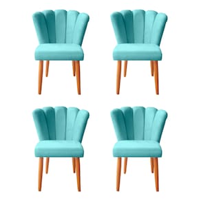 Kit 4 Cadeiras De Jantar Estofadas Reforçada Decorativa Pétala Suede Azul Tifany