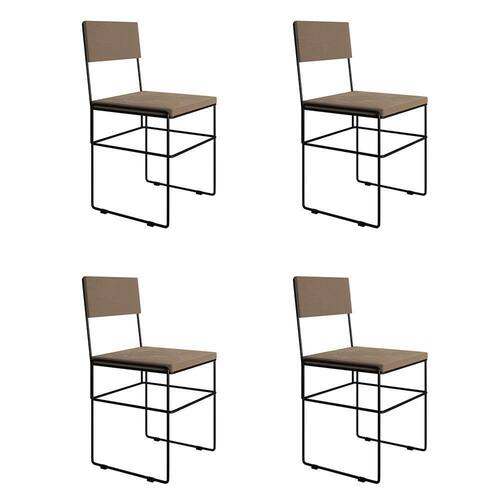Kit 4 Cadeiras De Jantar Estofadas Veludo Bege Aço Preto Vitoria - Cor: Preto