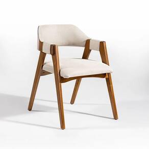 Kit 4 Cadeiras de Jantar Lua Estofada em Madeira Maciça Imbuia Linho Bege L60 Rmi