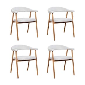 AS IMAGENS SÃO MERAMENTE ILUSTRATIVAS E PODEM SOFRER VARIAÇÕES DE COR E PEQUENOS DETALHES DE ACORDO COM O SEU MONITOR, ILUMINAÇÃO DO AMBIENTE E ATÉ MESMO A SUA PERCEPÇÃO 4 Cadeiras de Jantar Luana Estrutura AÃo Carbono Laminado Natural com Estofado Linho Cru