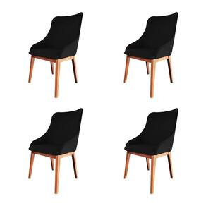 Kit 4 Cadeiras De Jantar Luxo Estofada Elisa Anatômica Veludo Preto Base Madeira Maciça