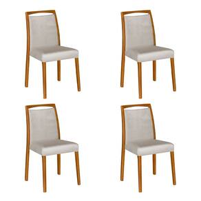 Kit 4 Cadeiras De Jantar Luxo Estofadas Jade Linho Bege Base Madeira Maciça
