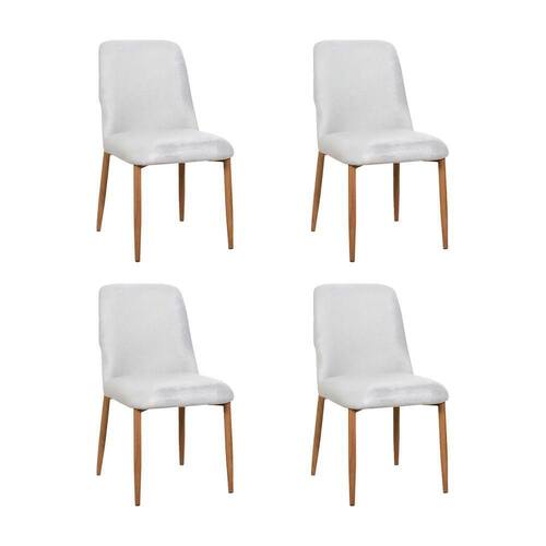 AS IMAGENS SÃO MERAMENTE ILUSTRATIVAS E PODEM SOFRER VARIAÇÕES DE COR E PEQUENOS DETALHES DE ACORDO COM O SEU MONITOR, ILUMINAÇÃO DO AMBIENTE E ATÉ MESMO A SUA PERCEPÇÃO 4 Cadeiras de Jantar Montana Estrutura AÃo Carbono Laminado Natural com Estofado Linho Cru