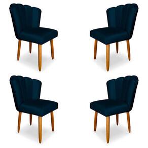 Kit 4 Cadeiras de Jantar Pétala Estofada Pés Palito Veludo Azul Marinho possui um assento e um encosto acolchoados com espuma, proporciona o melhor conforto ao cliente, tornando a cadeira mais agradável para sua Sala de Jantar. Ela vêm em uma ampla variedade de Cores permitindo que você escolha uma opção que se adapte ao seu gosto pessoal e à decoração do ambiente. Produzida com matéria-prima de Alto nível, garantindo durabilidade e firmeza do produto.