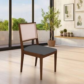 AS IMAGENS SÃO MERAMENTE ILUSTRATIVAS E PODEM SOFRER VARIAÇÕES DE COR E PEQUENOS DETALHES DE ACORDO COM O SEU MONITOR, ILUMINAÇÃO DO AMBIENTE E ATÉ MESMO A SUA PERCEPÇÃO VISUAL.Kit 4 Cadeiras de Jantar Suellen em Madeira e Mdf Mel Linho Cinza Grafite