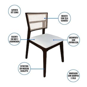 Cadeira Manuela com Encosto em Tela e Base em Madeira Eucalipto Conforto, Modernidade e Funcionalidade para o Dia a Dia