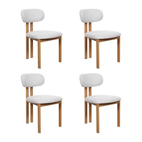 AS IMAGENS SÃO MERAMENTE ILUSTRATIVAS E PODEM SOFRER VARIAÇÕES DE COR E PEQUENOS DETALHES DE ACORDO COM O SEU MONITOR, ILUMINAÇÃO DO AMBIENTE E ATÉ MESMO A SUA PERCEPÇÃO 4 Cadeiras de Jantar Tulipa Estrutura AÃo Carbono Laminado Natural com Estofado Linho Cru