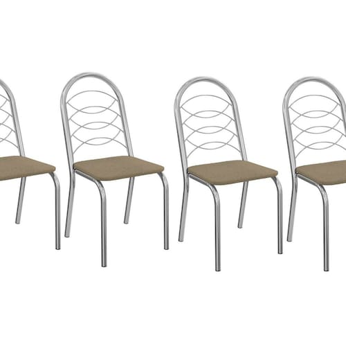 Robusta, prática e versátil em todos os momentos, aposte na Cadeira Holanda da Kappesberg e deixe seus momentos ainda mais completos. Produzida em estrutura metálica cromada, com o máximo de resistência, a cadeira conta com estrutura tubular redonda, além de um design prático para todos os momentos do seu dia. Com medidas de 91,8cm de altura, sendo 46cm a altura do assento, 42cm de largura e 58cm de profundidade, ela suporta até 130kg, garantindo estabilidade, resistência e durabilidade. E para mais comodidade, o assento é estofado e recoberto em tecido bouclé cinza. Já o encosto, enclinado, conta com detalhes em aramado, que proporcionam um melhor acabamento e conforto durante as refeições. Renove seus momentos com a Cadeira Holanda da Kappesberg e os deixe ainda mais completos. Acabamento da Estrutura: Cromada Altura do assento até o chão: 46 cm Ambiente Principal: Sala de Jantar Complexidade da Montagem: Média: pode ser montado por mais de uma pessoa e/ou necessite de maior conhecimento para montagem Cor: Cromado/Bege Cor do Produto: Cromado/Bege Escala de Brilho: Semi-Brilho Estrutura do Assento: MDP Estrutura do Encosto: Metal Itens Inclusos: 4 Cadeiras, Manual de Montagem e ferragens Linha ou Coleção: CROME Material Principal: Metal Necessita Montagem: Sim Origem do Produto: Nacional Peso: 15,7 kg Possui Rodízio: Não Recomendações de Uso, Manutenção e Limpeza: Limpeza diária somente com pano seco (flanela) ou pano branco e macio, pois o acúmulo de sujeira estimula o aparecimento de ferrugem. Evitar limpar com água, pois pode ocorrer o acúmulo de líquido em regiões especíicas da peça. Não utilizar produtos de limpeza que possuem cloro em sua formação. Encerar no mínimo uma vez por mês com cera automotiva. Em zona litorânea encerrar pelo menos 1 vez por semana. A maresia e a umidade são altamente prejudiciais ao revestimento. Não utilizar qualquer tipo abrasivo de limpeza. Não deixar as estruturas expostas ao ambiente externo como sacadas, patios...etc. Batidas na estrutura podem ocasionar riscos e desplacamento da camada de pintura. Revestimento do Encosto: Cromado Sistema de Montagem: Parafuso Philips Tipo de Assento: Fixo Tipo de Encosto: Fixo