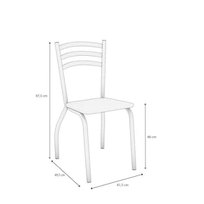Seja para a cozinha ou a sala de jantar, a Cadeira Portugal da Kappesberg é a escolha ideal. Produzida em estrutura metálica pintada com tinta epóxi na cor níquel, ela é robusta e resistente, contando com estrutura tubular redonda, além de um design prático para ser utilizada em todos os momentos. Medindo 87,5cm de altura, sendo 46cm a altura do assento, 41,5cm de largura e 49,5cm de profundidade, suportando até 130kg, garantindo estabilidade e resistência, além de muita durabilidade. E para mais comodidade, o assento é estofado e recoberto com tecido bouclé cinza. Já o encosto, com faixas superiores, garante um encaixe perfeito com as costas, proporcionando diferencial e conforto ao produto. Conheça a Cadeira Portugal da Kappesberg e deixe seus momentos ainda mais completos. Acabamento da Estrutura: Pintura Altura do assento até o chão: 46 cm Ambiente Principal: Sala de Jantar Complexidade da Montagem: Média: pode ser montado por mais de uma pessoa e/ou necessite de maior conhecimento para montagem Cor: Nickel/Cinza Cor do Produto: Nickel/Cinza Escala de Brilho: Fosco Estrutura do Assento: MDP Estrutura do Encosto: Metal Itens Inclusos: 4 Cadeiras, Manual de Montagem e ferragens Linha ou Coleção: Crome Material Principal: Metal Necessita Montagem: Sim Origem do Produto: Nacional Peso: 15,1 kg Possui Rodízio: Não Recomendações de Uso, Manutenção e Limpeza: Limpeza diária somente com pano seco (flanela) ou pano branco e macio, pois o acúmulo de sujeira estimula o aparecimento de ferrugem. Evitar limpar com água, pois pode ocorrer o acúmulo de líquido em regiões especíicas da peça. Não utilizar produtos de limpeza que possuem cloro em sua formação. Encerar no mínimo uma vez por mês com cera automotiva. Em zona litorânea encerrar pelo menos 1 vez por semana. A maresia e a umidade são altamente prejudiciais ao revestimento. Não utilizar qualquer tipo abrasivo de limpeza. Não deixar as estruturas expostas ao ambiente externo como sacadas, patios...etc. Batidas na estrutura podem ocasionar riscos e desplacamento da camada de pintura. Revestimento do Encosto: Pintura Epoxi Sistema de Montagem: Parafuso Philips Tipo de Assento: Fixo Tipo de Encosto: Fixo