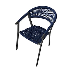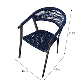 Kit 4 Cadeiras Decorativa Joana em Corda Náutica e Base em Alumínio Preta /azul Marinho - Azul Royal