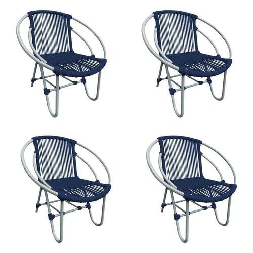 Kit 4 Cadeiras Decorativa Julia Em Corda Náutica E Base Em Alumínio Cinza/ Azul Marinho - Cor: Azul