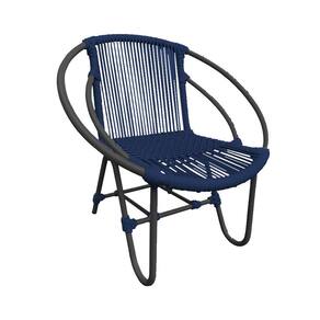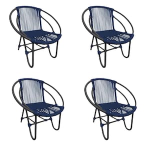 Kit 4 Cadeiras Decorativa Julia em Corda Náutica e Base em Alumínio Preta/ Azul Marinho - Azul Royal