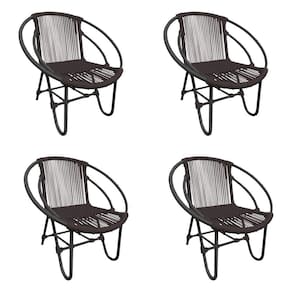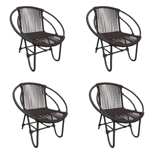 Kit 4 Cadeiras Decorativa Julia em Corda NÃutica e Base em AlumÃnio Preta/ Marrom