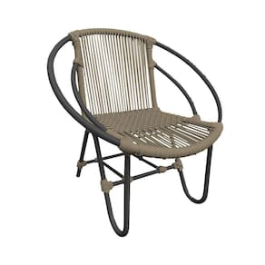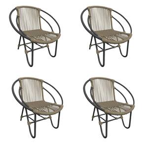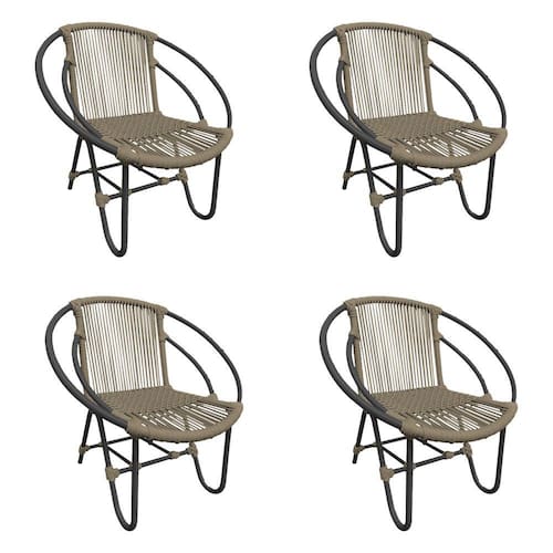 Kit 4 Cadeiras Decorativa Julia em Corda Náutica e Base em Alumínio Preta/ Rami - Bege