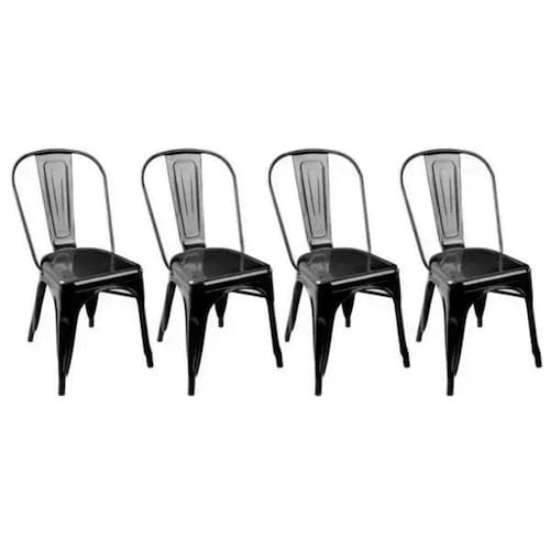 KIT Com 4 Cadeiras Design Tolix Metal Pelegrin PEL-1518 Cor Preta