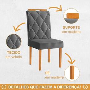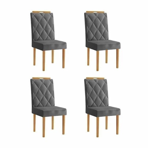 Kit 4 Cadeiras Diamante JCM Movelaria Cinamomo Veludo Cinza