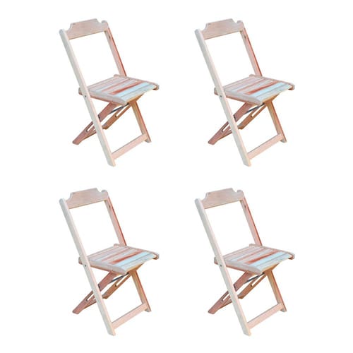 Kit 4 Cadeiras De Madeira Dobravel Sem Pintura/Crua é ideal para bares, restaurantes, estabelecimentos, áreas de lazer e tambem para sua casa. Feito em madeira maciça, tornando resistentes e duráveis. Seu design permite que seja encaixado em qualquer ambiente, trazendo um toque a mais para seu estabelecimento. Além de sua durabilidade, o que lhe trará conforto para servir seus clientes. Por ser dobrável torna-se mais fácil guardar, manusear e limpar o produto. Atenção: EVITE USAR PRODUTOS ABRASIVOS E QUíMICOS PARA LIMPEZA DO PRODUTO, aconselha-se o uso de pano umedecido para melhor conservação; mantenha o produto fora de chuva e sol constantes. CADEIRA Cor: Sem Pintura/Crua Modelo: Dobravel Dimensões: Altura 80cm | Largura 45cm | Profundidade 42cm