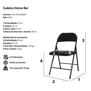 Modelo: Cadeira Dobrável De Bar Ferro Aço Assento Almofadado Pé Palito Assento: Ferro Almofadado Base: Ferro Almofadado