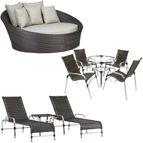 Kit 4 Cadeiras E Mesa 2 Espreguiçadeiras 1 Chaise Alumínio Trama - Marrom Escuro