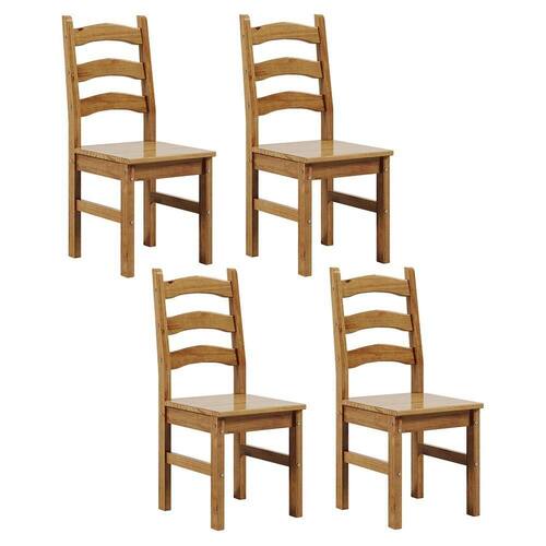 A cadeira Napoli é em Madeira Maciça com acabamento em verniz acetinado que realça os veios naturais da madeira. Estrutura com peças reforçadas para maximizar a estabilidade e durabilidade. Encosto em ângulo, assento ergonômico e confortável. Ideal para compor ambientes rústicos ou clássicos. Ótima opção para cozinhas e salas de jantar. Acabamento: Verniz Acabamento da Estrutura: Pintura UV Altura do assento até o chão: 45 cm Ambiente Principal: Sala de Jantar codigo_ean: 7900288252692 Complexidade da Montagem: Baixa: pode ser montado por uma pessoa sozinha Cor: Nogueira Cor do Produto: Nogueira Design da Cadeira: Outras Sem Estofamento Dobrável: Não Escala de Brilho: Semi-Brilho Giratória: Não Informações Complementares: Possui cantos arredondados e acabamento com Pintura UV e Verniz Acetinado Atóxico. Encosto com ripado em peças angulares, aumentando o conforto. Itens Inclusos: 4 Cadeiras, Manual de Montagem e Kit de Ferragens. Linha ou Coleção: Napoli Manual de Montagem e Instalação: https://cdn2.madeiramadeira.com.br/atributo/tabulae-moveis/3263992-6341-17598485160078.pdf Marca: Espresso Móveis Material Principal: Madeira Maciça Necessita Montagem: Sim Origem do Produto: Nacional Peso: 26,8 kg Possui Apoio para Braços: Não Possui Apoio Para os Pés: Não Possui Assento/Encosto Estofados: Não Possui Espaldar: Sim Quantidade de Itens: 4 Recomendações de Uso, Manutenção e Limpeza: Limpar com flanela ou pano macio seco, não utilizar produtos abrasivos, desengordurantes, álcool ou solvente. Sistema de Montagem: Parafuso, cavilha e cola. Tipo de Assento: Fixo Tipo de Encosto: Fixo Tipo de Madeira Maciça: Pinus