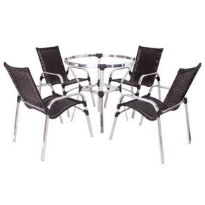 Kit 4 Cadeiras Emily E Mesa Ascoli Adaptada Em Alumínio Par Tabaco ATENCAO: consulte o custo de envio. ITENS INCLS: 04 Cadeiras Emily em Aluminio 01 Mesa Ascoli Adaptada NAO ACOMPANHA TAMPO