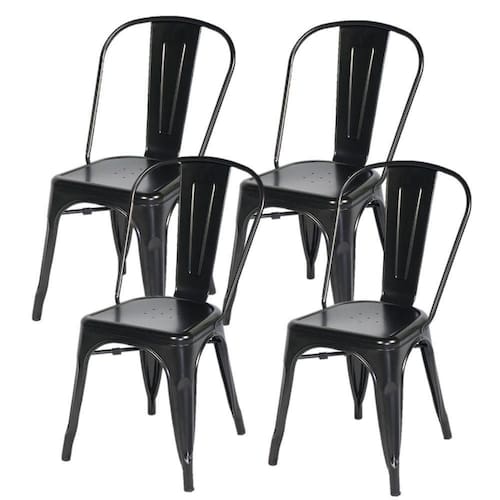 Kit 4 Cadeiras Empilhavel Reforçada Industrial Iron Tolix - Preto Cadeira Tolix Iron Design Cadeira Fixa Design Tolix Metal Preta Conhecida popularmente como Cadeira Francesinha, tem grande influência no mercado europeu devido ao seu elegante design retrô. O modelo clássico idealizado pelo francês Xavier Pauchard nos anos 20 foi resultado de seu experimento pioneiro da fabricação de móveis com metal cadeira com formas simples, porém funcionais fez tanto sucesso que se tornou muito popular em fábricas, escritórios, restaurantes, bem como nos cafés, bares e parques públicos da época. Hoje conhecida como Cadeira Tolix, é um ícone da estética industrial, podendo ser utilizada em qualquer ambiente trazendo elegância e estrutura em aço de carbono e acabamento em pintura eletrostática, pode ser utilizada em ambientes externos. Projetada com alguns furos em seu assento com a finalidade de não acumular água, facilitando sua limpeza e manutençã Cadeira Tolix é clássica, com design vintage e pode ser combinada com outros modelos de cadeiras. Disponível em variedade de cores, permitindo um ambiente mais descontraído. Instruções De LimpezaAplique um sabão em uma esponja úmida e limpe toda a superfície da banqueta, e logo em seguida, limpe o sabão com um pano branco úmido. Assento: Aço com Pintura EpóxiBase: Aço com Pintura Epóxi Profundidade: 47 cmLargura: 45 cmAltura Total: 86 cmAltura do Chão Até o Assento: 45 cmProfundidade Interna do Assento: 36 cmLargura Interna do Assento: 45 cmPeso Máx. Recomendado: 120 kgsPeso unitário: 6 kgs Informações importantes:- Os objetos que ambientam as fotos não acompanham o produto.Verifique as dimensões do produto e certifique-se que o percurso que ele fará até o de uso permite sua passagem.