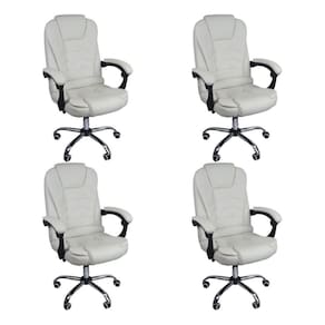 Kit 4 Cadeiras Escritório Presidente Reclinável Ergonômica - Branco