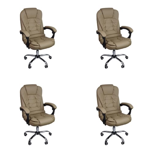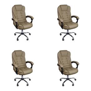 Kit 4 Cadeiras Escritório Presidente Reclinável Ergonômica - Bege