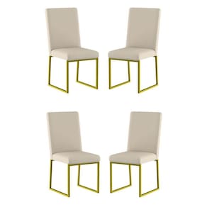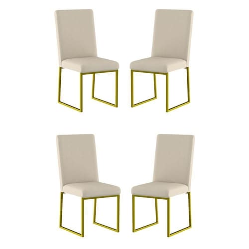 Você receberá dois volumes, ou seja, apenas quatro Cadeira Estofada para Mesa de Jantar com Base Industrial Dourado.