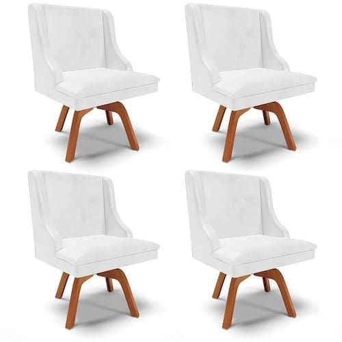 O Kit 4 Cadeiras Estofadas Base Giratória de Madeira Lia Sintético Premium Branco, da Ibiza, é o que faltava para completar a sua casa, confira os detalhes!