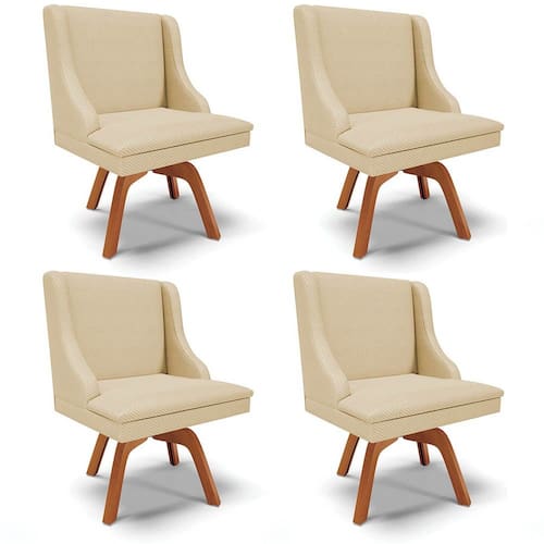 O Kit 4 Cadeiras Estofadas Base Giratória de Madeira Lia Veludo Off White Luxo, da Ibiza, é o Kit que vai renovar a decoração da sua Sala de Jantar, vem conhecer!