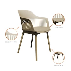 Estrutura em polipropileno (PP), material durável e leve, com assento estofado em poliuretano (PU), proporcionando excelente conforto.
