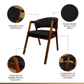 A Cadeira Poltrona Ravena é a escolha ideal para quem busca conforto e estilo para sua casa. Com estrutura em madeira eucalipto ecologicamente correta, esta poltrona é resistente e durável, para te acompanhar por muitos anos. O acabamento em verniz oferece um visual clássico e elegante, que combina com diversos estilos de decoração. O assento e encosto estofados com espuma D23 garantem um conforto inigualável, perfeito para relaxar após um longo dia. O tecido Monte Rey é macio e aconchegante, e complementa o design com um toque de sofisticação. Funcional, elegante e confortável, a Cadeira Poltrona Ravena é a escolha perfeita para quem busca um móvel de qualidade para decorar sua sala de estar, quarto ou qualquer outro ambiente da sua casa. CARACTERÍSTICAS TÉCNICAS DA CADEIRA RAVENA: - Estrutura: Madeira Eucalipto Ecologicamente Correta; - Acabamento: Verniz na Cor Castanho; - Estofado: Assento e Encosto com Espuma D23; - Tecido: Monte Rey na Cor Preto. *CADEIRAS ENTREGUE MONTADAS. *KIT COMPOSTO POR 4 CADEIRAS RAVENA. DIMENSÕES DA CADEIRA RAVENA: Altura: 86 Cm Altura até o Braço: 70 Cm Altura Assento: 47 Cm Largura: 55 Cm Profundidade: 60 Cm Peso: 5 Kg INFORMAÇÕES ADICIONAIS: ATENÇÃO: Móvel produzido em madeira maciça natural podendo ocorrer mudança no tom da madeira conforme o produto;*Conferir se o produto está de acordo com o que comprou, produto danificado não será aceito troca;**As imagens ambientadas são meramente ilustrativas e podem apresentar itens que não compõe o produto. As cores do produto podem variar de acordo com o monitor, a iluminação do ambiente ou sua percepção visual;***Limpeza deve ser feita com pano macio e seco ou levemente umedecido com água e sabão neutro. Não devem ser utilizados produtos abrasivos;Garantia para defeitos de fabricação conforme Código de Defesa do Consumidor. Marca: CCS Interiores